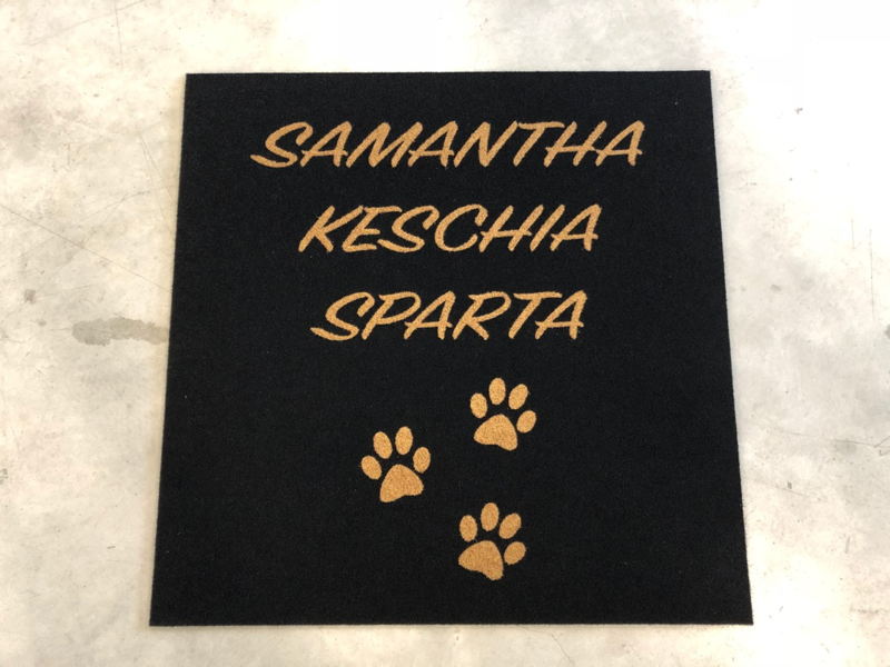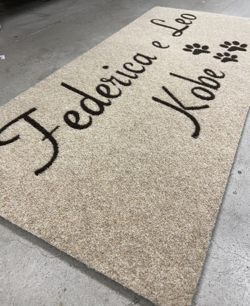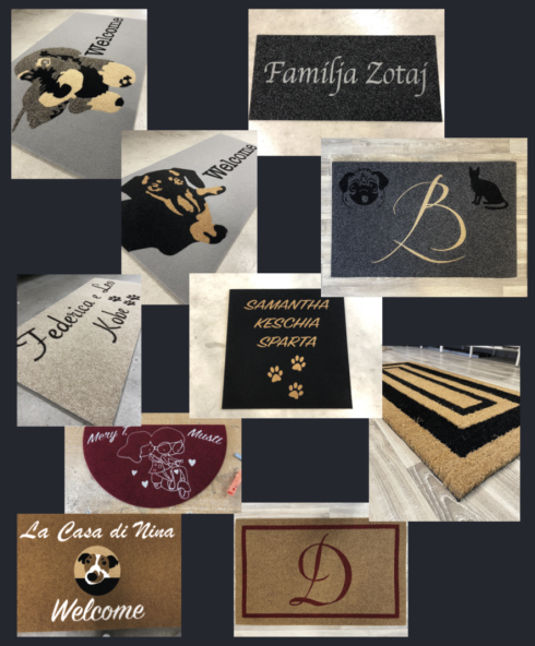 Puoi scegliere una scritta, un disegno o una qualsiasi grafica che desideri per personalizzare il tuo zerbino.